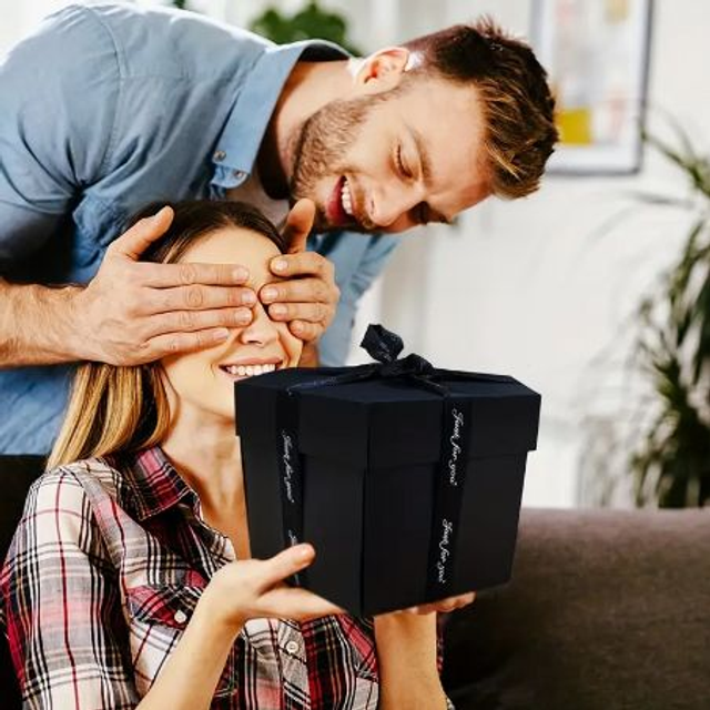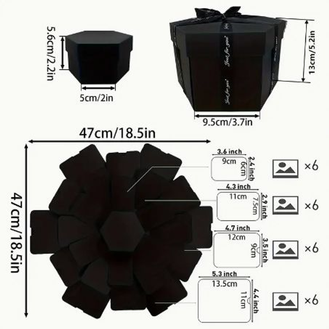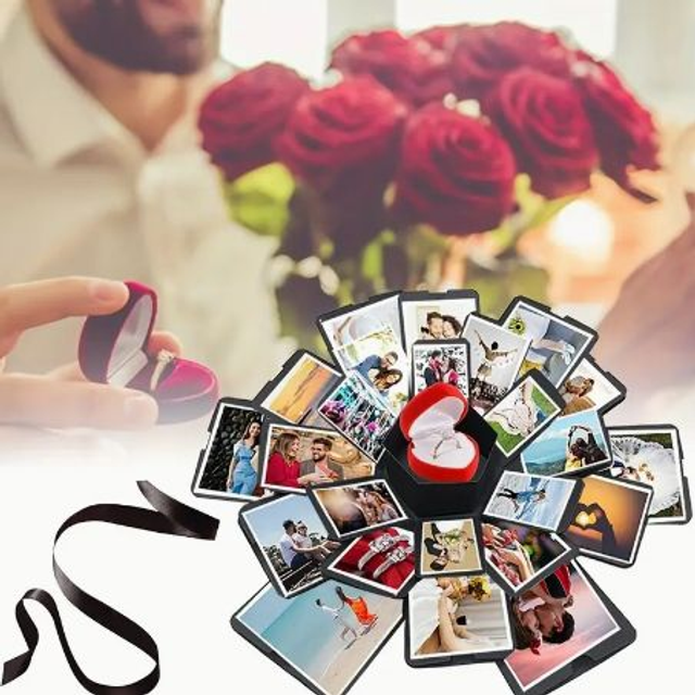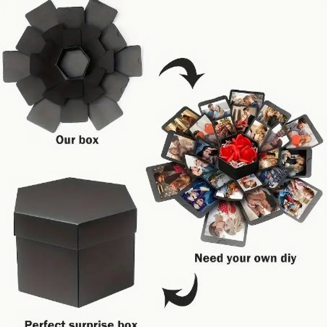 La scatola dell'esplosione assomiglia a una normale scatola , ma quando la apri troverai molte sorprese, puoi scrivere bei ricordi con le persone che ami, qualunque cosa tu voglia esprimere riempire, la performance d'amore, PUO' CONTENERE FINO A 60 FOTO